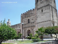 Fachada del Ex-Convento y sus jardines, así como algunas imágenes de sus interiores donde se pueden apreciar algunas de las pinturas de la época en sus cuartos.